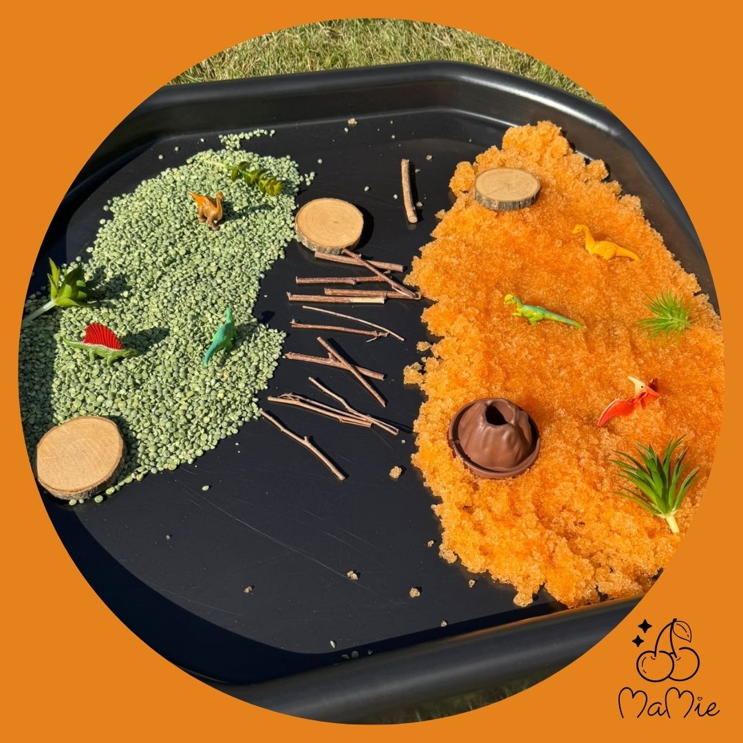 Stap terug in de tijd en ontdek de wereld van de dinosaurussen met deze spannende speelbox! Perfect voor kleine avonturiers en dino-fans. Deze box stimuleert fantasierijk spel, zintuiglijke ontwikkeling én nieuwsgierigheid naar de oertijd – met echte uitbarstingen, glibberige lava en levensechte figuren!