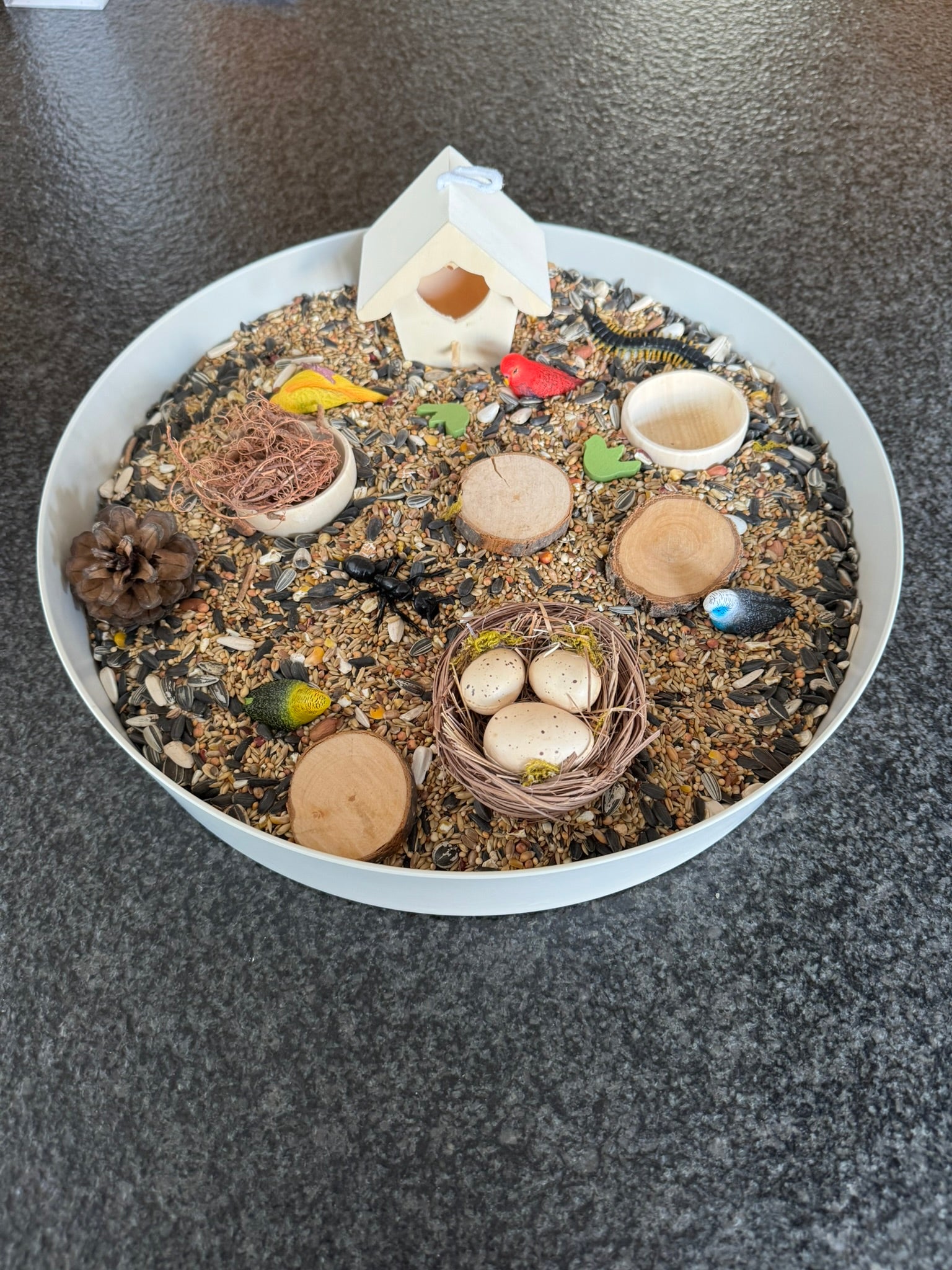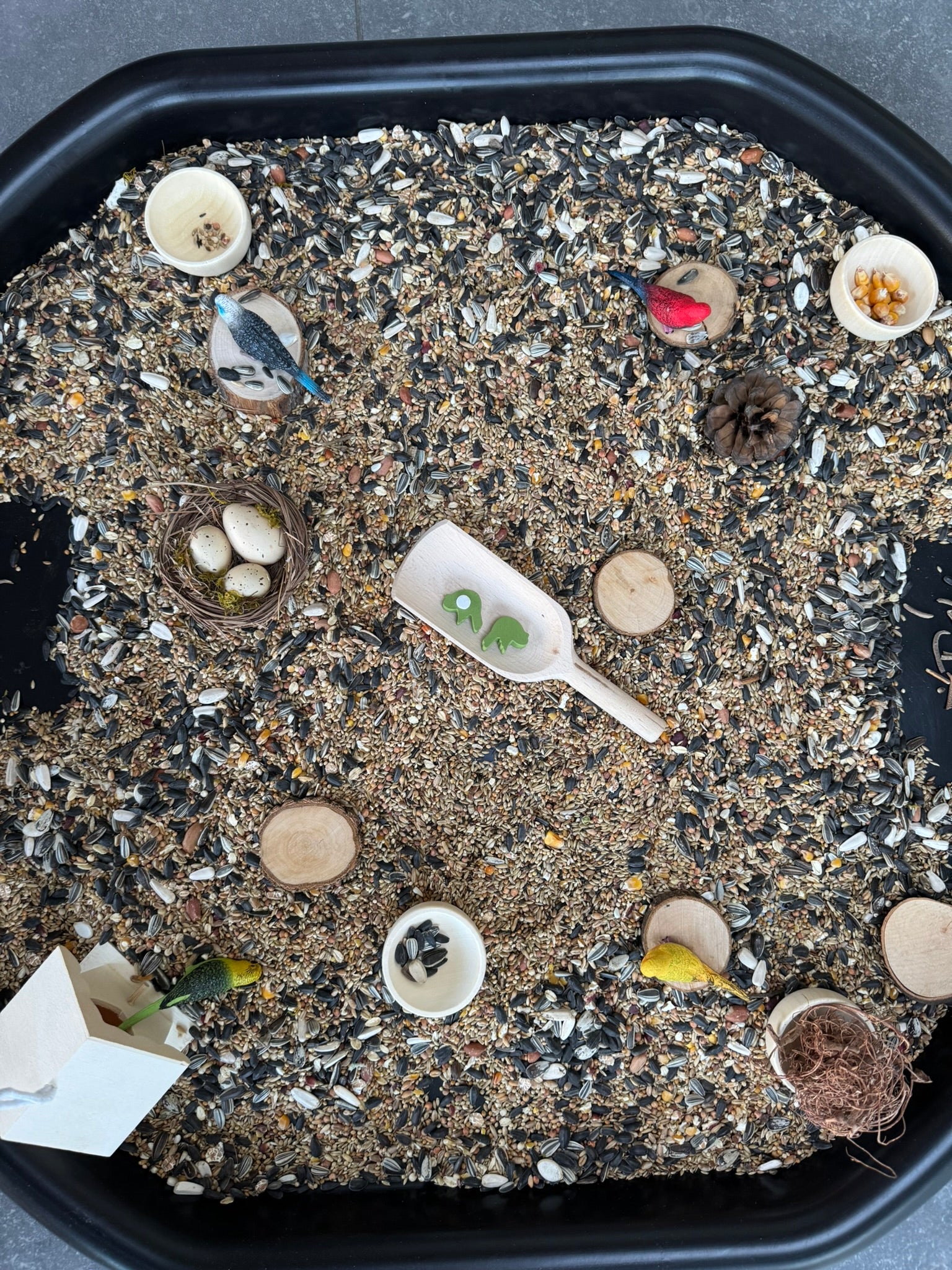 Deze tweedekans vogelbox werd eerder gebruikt tijdens speelsessies, maar is nog in prima staat om opnieuw ontdekt te worden.