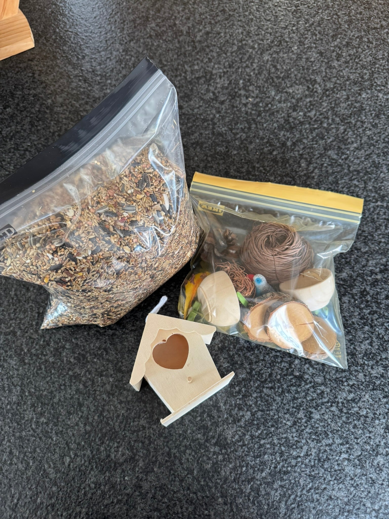 - Vulling: vogelzaad: 1500 gram.